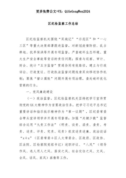 【七哥公文】2025年:区纪检监察工作总结+更多免费公文+VX:QiGeGongWen2024+更多免费公文+VX:QiGeGongWen2024
