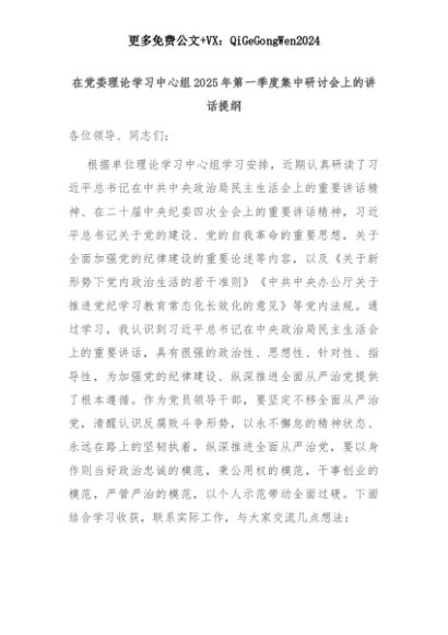【七哥公文】2025年:在党委理论学习中心组2025年第一季度集中研讨会上的讲话提纲+更多免费公文+VX:QiGeGongWen2024+更多免费公文+VX:QiGeGongWen2024