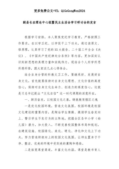 【七哥公文】2025年:副县长在理论中心组暨民主生活会学习研讨会的发言+更多免费公文+VX:QiGeGongWen2024+更多免费公文+VX:QiGeGongWen2024