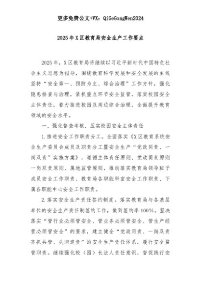 【七哥公文】2025年:2025年X区教育局安全生产工作要点+更多免费公文+VX:QiGeGongWen2024+更多免费公文+VX:QiGeGongWen2024