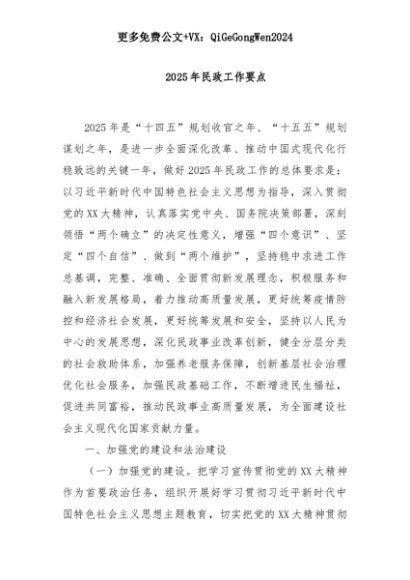 【七哥公文】2025年:2025年民政工作要点+更多免费公文+VX:QiGeGongWen2024+更多免费公文+VX:QiGeGongWen2024