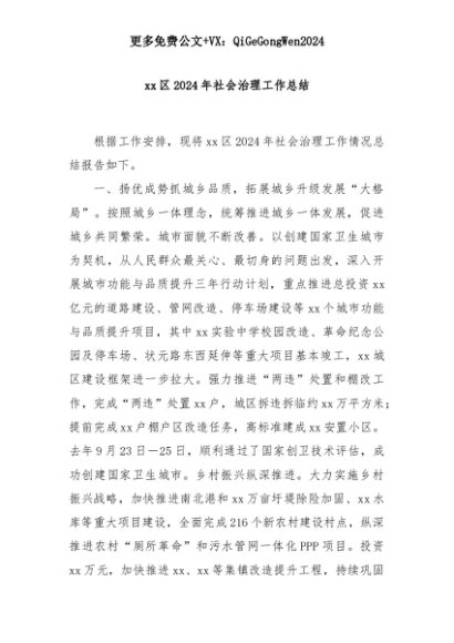 【七哥公文】2025年:xx区2024年社会治理工作总结+更多免费公文+VX:QiGeGongWen2024+更多免费公文+VX:QiGeGongWen2024