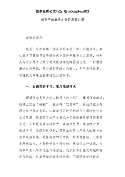【七哥公文】2025年:领导干部廉洁自律的思想汇报+更多免费公文+VX:QiGeGongWen2024+更多免费公文+VX:QiGeGongWen2024
