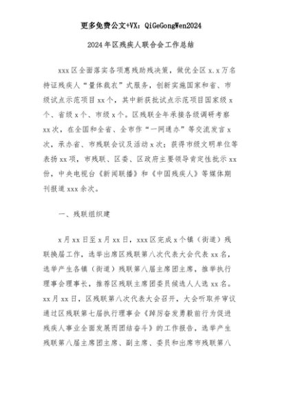 【七哥公文】2025年:2024年区残疾人联合会工作总结+更多免费公文+VX:QiGeGongWen2024+更多免费公文+VX:QiGeGongWen2024