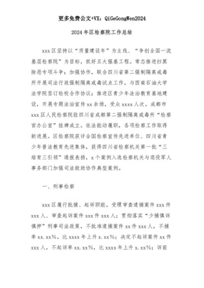 【七哥公文】2025年:2024年区检察院工作总结+更多免费公文+VX:QiGeGongWen2024+更多免费公文+VX:QiGeGongWen2024