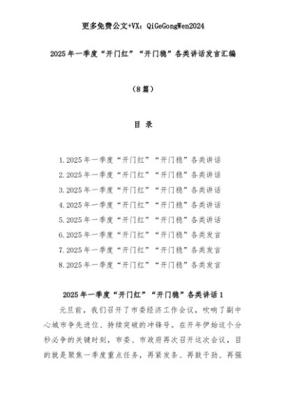 【七哥公文】2025年:(8篇)2025年一季度“开门红”“开门稳”各类讲话发言汇编+更多免费公文+VX:QiGeGongWen2024+更多免费公文+VX:QiGeGongWen2024