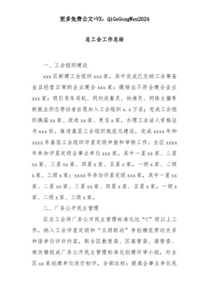 【七哥公文】2025年:总工会工作总结+更多免费公文+VX:QiGeGongWen2024+更多免费公文+VX:QiGeGongWen2024