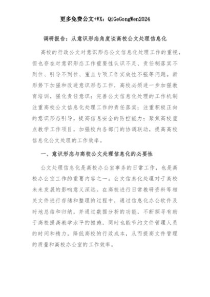 【七哥公文】2025年:调研报告:从意识形态角度谈高校公文处理信息化+更多免费公文+VX:QiGeGongWen2024+更多免费公文+VX:QiGeGongWen2024