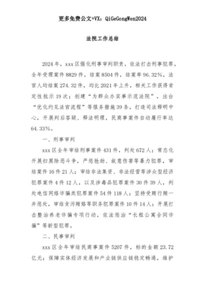 【七哥公文】2025年:法院工作总结+更多免费公文+VX:QiGeGongWen2024+更多免费公文+VX:QiGeGongWen2024