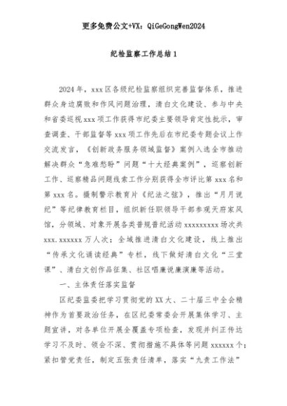 【七哥公文】2025年:纪检监察工作总结1+更多免费公文+VX:QiGeGongWen2024+更多免费公文+VX:QiGeGongWen2024