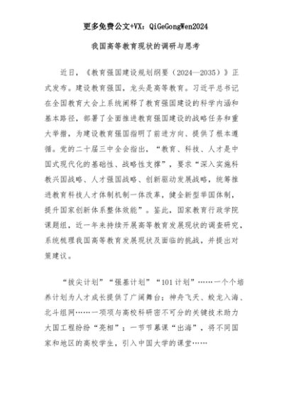【七哥公文】2025年:我国高等教育现状的调研与思考+更多免费公文+VX:QiGeGongWen2024+更多免费公文+VX:QiGeGongWen2024