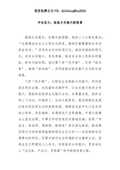 【七哥公文】2025年:申论范文:绘就乡村振兴新图景+更多免费公文+VX:QiGeGongWen2024+更多免费公文+VX:QiGeGongWen2024