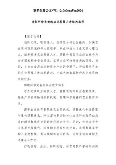 【七哥公文】2025年:开拓科学有效的农业科技人才培养路径+更多免费公文+VX:QiGeGongWen2024+更多免费公文+VX:QiGeGongWen2024