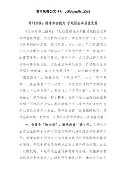 【七哥公文】2025年:培训讲稿:提升综合能力 护航国企高质量发展+更多免费公文+VX:QiGeGongWen2024+更多免费公文+VX:QiGeGongWen2024