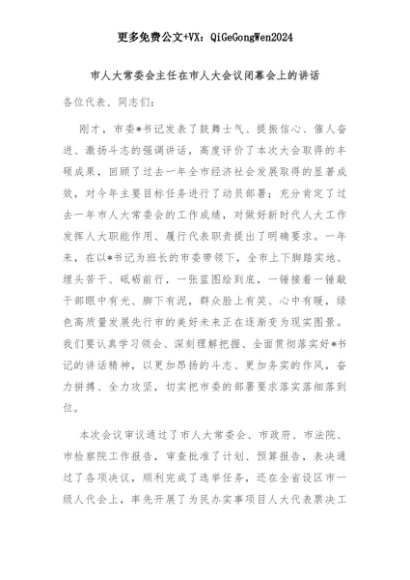 【七哥公文】2025年:市人大常委会主任在市人大会议闭幕会上的讲话+更多免费公文+VX:QiGeGongWen2024+更多免费公文+VX:QiGeGongWen2024