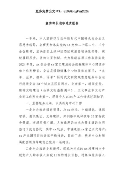 【七哥公文】2025年:宣传部长述职述责报告+更多免费公文+VX:QiGeGongWen2024+更多免费公文+VX:QiGeGongWen2024