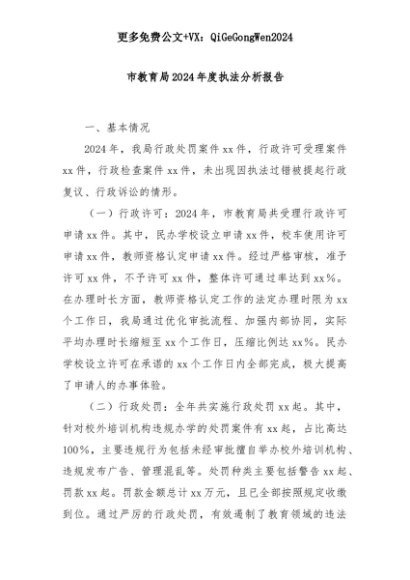 【七哥公文】2025年:市教育局2024年度执法分析报告+更多免费公文+VX:QiGeGongWen2024+更多免费公文+VX:QiGeGongWen2024