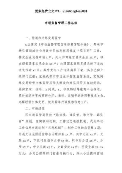 【七哥公文】2025年:市场监督管理工作总结+更多免费公文+VX:QiGeGongWen2024+更多免费公文+VX:QiGeGongWen2024