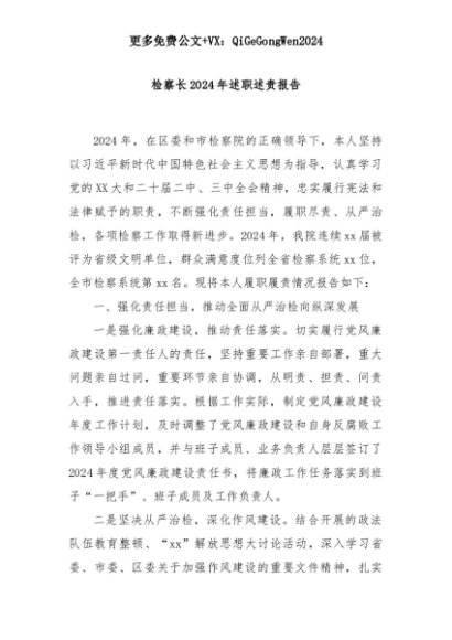 【七哥公文】2025年:检察长2024年述职述责报告+更多免费公文+VX:QiGeGongWen2024+更多免费公文+VX:QiGeGongWen2024