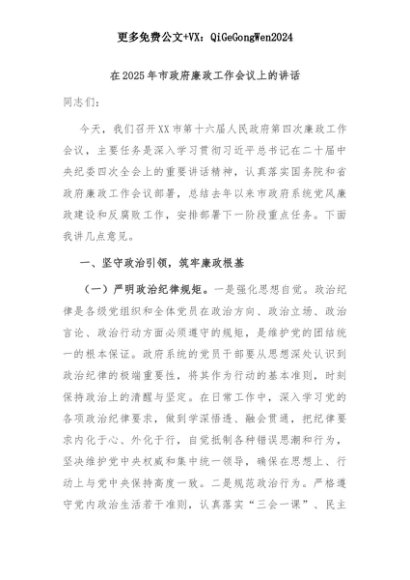 【七哥公文】2025年:在2025年市政府廉政工作会议上的讲话+更多免费公文+VX:QiGeGongWen2024+更多免费公文+VX:QiGeGongWen2024