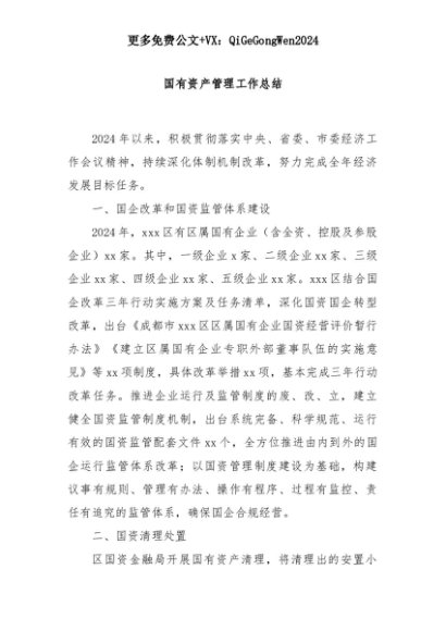 【七哥公文】2025年:国有资产管理工作总结+更多免费公文+VX:QiGeGongWen2024+更多免费公文+VX:QiGeGongWen2024