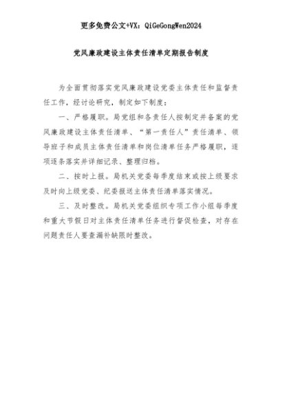 【七哥公文】2025年:党风廉政建设主体责任清单定期报告制度+更多免费公文+VX:QiGeGongWen2024+更多免费公文+VX:QiGeGongWen2024