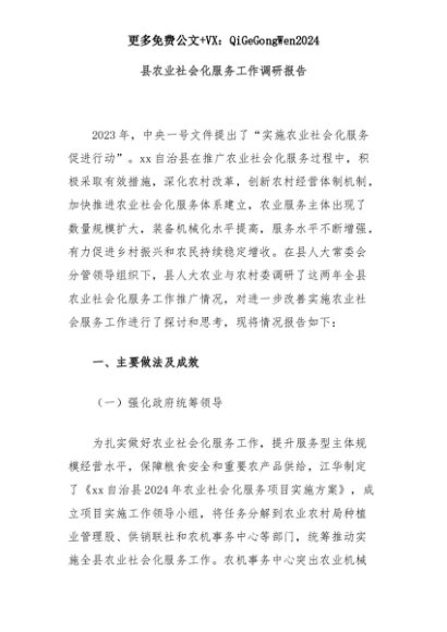【七哥公文】2025年:县农业社会化服务工作调研报告+更多免费公文+VX:QiGeGongWen2024+更多免费公文+VX:QiGeGongWen2024