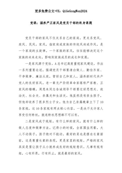 【七哥公文】2025年:党课:涵养严正家风是党员干部的终身课题+更多免费公文+VX:QiGeGongWen2024+更多免费公文+VX:QiGeGongWen2024