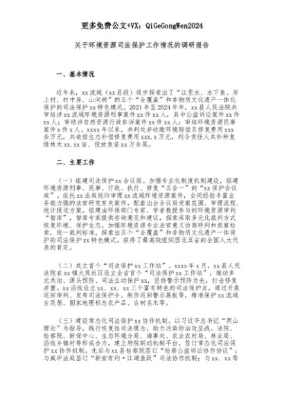 【七哥公文】2025年:关于环境资源司法保护工作情况的调研报告+更多免费公文+VX:QiGeGongWen2024+更多免费公文+VX:QiGeGongWen2024
