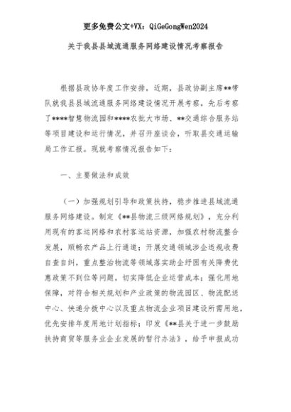 【七哥公文】2025年:关于我县县域流通服务网络建设情况考察报告+更多免费公文+VX:QiGeGongWen2024+更多免费公文+VX:QiGeGongWen2024