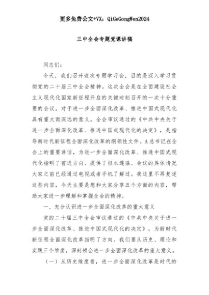 【七哥公文】2025年:三中全会专题党课讲稿+更多免费公文+VX:QiGeGongWen2024+更多免费公文+VX:QiGeGongWen2024