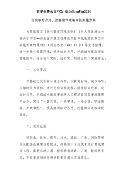 【七哥公文】2025年:优化临时占用、挖掘城市道路审批实施方案+更多免费公文+VX:QiGeGongWen2024+更多免费公文+VX:QiGeGongWen2024