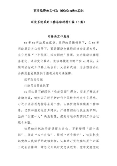 【七哥公文】2025年:(6篇)司法系统系列工作总结材料汇编+更多免费公文+VX:QiGeGongWen2024+更多免费公文+VX:QiGeGongWen2024