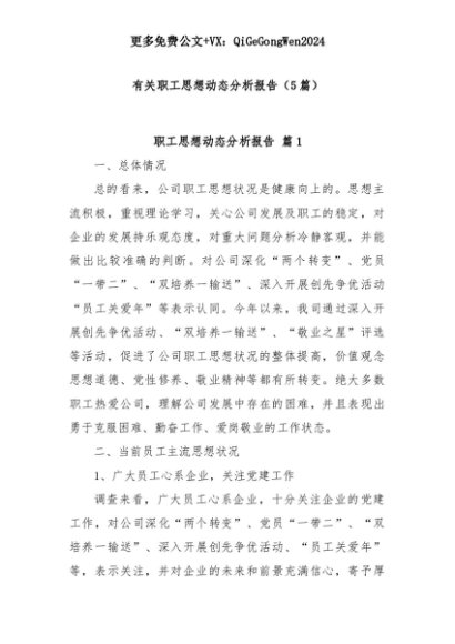 【七哥公文】2025年:(5篇)有关职工思想动态分析报告+更多免费公文+VX:QiGeGongWen2024+更多免费公文+VX:QiGeGongWen2024