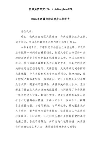 【七哥公文】2025年:2025年西藏自治区政府工作报告+更多免费公文+VX:QiGeGongWen2024+更多免费公文+VX:QiGeGongWen2024