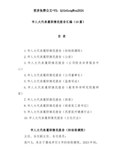 【七哥公文】2025年:(10篇)市人大代表履职情况报告汇编+更多免费公文+VX:QiGeGongWen2024+更多免费公文+VX:QiGeGongWen2024