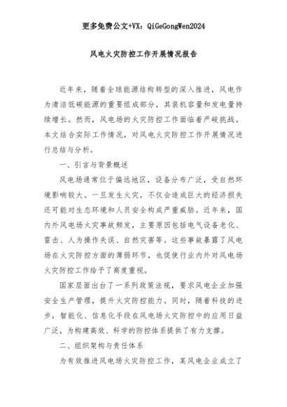 【七哥公文】2025年:风电火灾防控工作开展情况报告+更多免费公文+VX:QiGeGongWen2024+更多免费公文+VX:QiGeGongWen2024