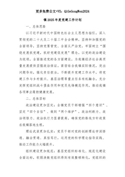 【七哥公文】2025年:镇2025年度党建工作计划+更多免费公文+VX:QiGeGongWen2024+更多免费公文+VX:QiGeGongWen2024
