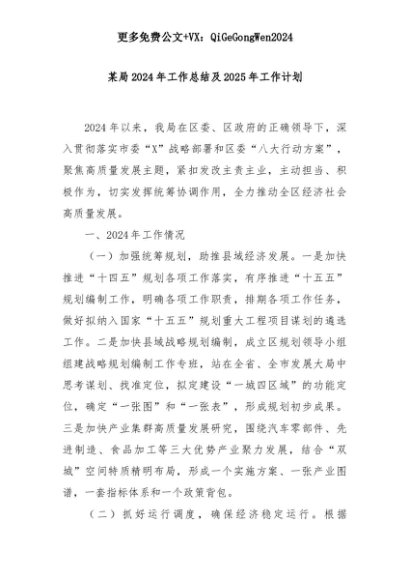 【七哥公文】2025年:某局2024年工作总结及2025年工作计划+更多免费公文+VX:QiGeGongWen2024+更多免费公文+VX:QiGeGongWen2024