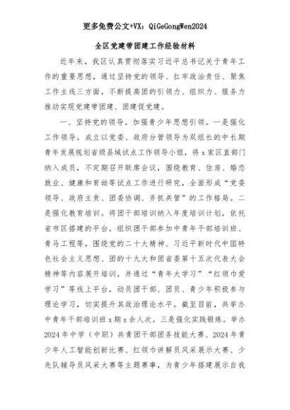 【七哥公文】2025年:全区党建带团建工作经验材料+更多免费公文+VX:QiGeGongWen2024+更多免费公文+VX:QiGeGongWen2024