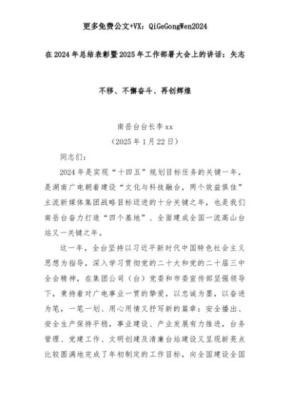 【七哥公文】2025年:在2024年总结表彰暨2025年工作部署大会上的讲话:矢志不移、不懈奋斗、再创辉煌+更多免费公文+VX:QiGeGongWen2024+更多免费公文+VX:QiGeGongWen2024