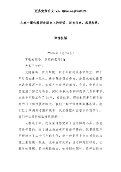 【七哥公文】2025年:在泰中退休教师欢送会上的讲话:回首往事,感恩相遇,深情祝福+更多免费公文+VX:QiGeGongWen2024+更多免费公文+VX:QiGeGongWen2024
