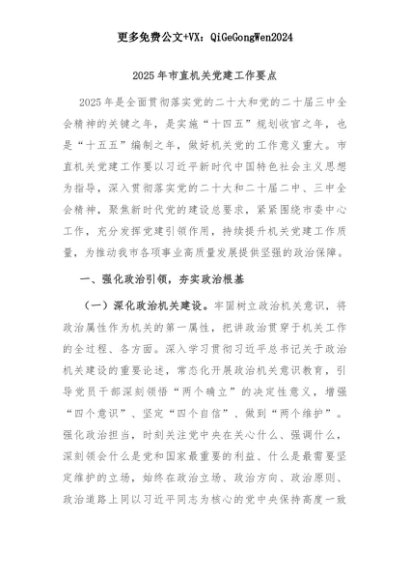 【七哥公文】2025年:2025年市直机关党建工作要点+更多免费公文+VX:QiGeGongWen2024+更多免费公文+VX:QiGeGongWen2024