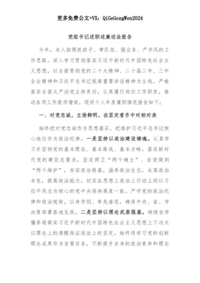 【七哥公文】2025年:党组书记述职述廉述法报告+更多免费公文+VX:QiGeGongWen2024+更多免费公文+VX:QiGeGongWen2024