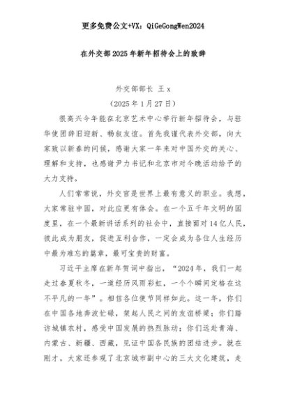 【七哥公文】2025年:在外交部2025年新年招待会上的致辞+更多免费公文+VX:QiGeGongWen2024+更多免费公文+VX:QiGeGongWen2024