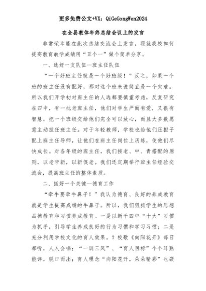【七哥公文】2025年:在全县教体年终总结会议上的发言+更多免费公文+VX:QiGeGongWen2024+更多免费公文+VX:QiGeGongWen2024