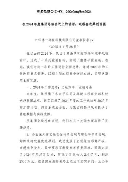 【七哥公文】2025年:在2024年度集团总结会议上的讲话:砥砺奋进共创百强+更多免费公文+VX:QiGeGongWen2024+更多免费公文+VX:QiGeGongWen2024
