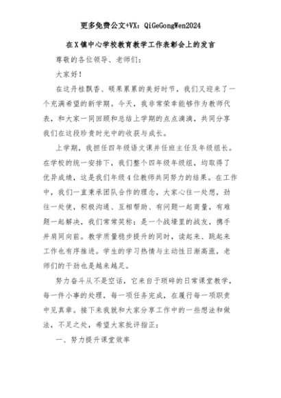 【七哥公文】2025年:在X镇中心学校教育教学工作表彰会上的发言+更多免费公文+VX:QiGeGongWen2024+更多免费公文+VX:QiGeGongWen2024