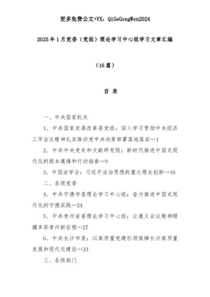 【七哥公文】2025年:(16篇)2025年1月党委(党组)理论学习中心组学习文章汇编+更多免费公文+VX:QiGeGongWen2024+更多免费公文+VX:QiGeGongWen2024