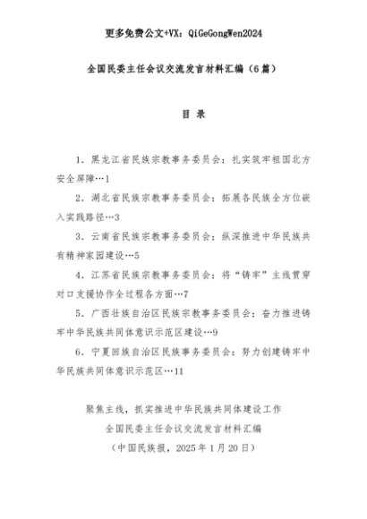 【七哥公文】2025年:(6篇)全国民委主任会议交流发言材料汇编+更多免费公文+VX:QiGeGongWen2024+更多免费公文+VX:QiGeGongWen2024